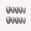 Step into a world of elegance with Midnight Dream by Ersa Nails. These press-on nails feature a captivating cat-eye effect that shifts between deep green and navy blue, adorned with silver irregular lines shaped like hearts and butterfly wings, and finished with delicate silver embellishments. Perfect for adding a touch of mystery and sophistication to any look.