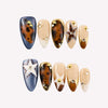 Insane by Ersa Nails is a futuristic press - on nails design that blends edgy and elegant vibes. With a palette of soft cream, sleek black, and metallic silver as the base tones, it’s decked out with 3D - like silver - toned patterns, lustrous pearls, and a touch of iridescent glitter accents. These elements create a unique, avant - garde look, perfect for bringing a bold, fashion - forward charm to your everyday style, special events, or music festivals where you aim to dazzle with one - of - a - kind nail art that stands out in the crowd. NAIL SHAPE: Medium Almond