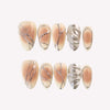Silver Venom by Ersa Nails is a striking press-on nails set made for bold festival moments. Featuring a nude base adorned with white lace patterns, shimmering silver lines, and hypnotic green cat eye accents, this set is finished with a statement 3D snake embellishment that commands attention. A daring blend of elegance and edge—perfect for the music festival crowd.