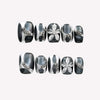 Leopard Print French Tip Press on Nails Square Fake Nails 3D Resin Bow Charm Designs False Nails Glossy Nude Pink Full Cover Acrylic Stick on Nails for Women Girls DIY Manicure Decoration 24Pcs